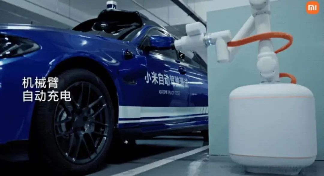 这段“炫技”视频能证明小米汽车的自动驾驶研发进展顺利,却并未带来太多亮点。唯一让外界感到有新意的是“机械臂自动充电”功能。在视频中,车辆停车入位后,车位旁边的充电机器人自动伸出机械臂为车辆充电,用户无需下车抬枪,看起来很方便。
