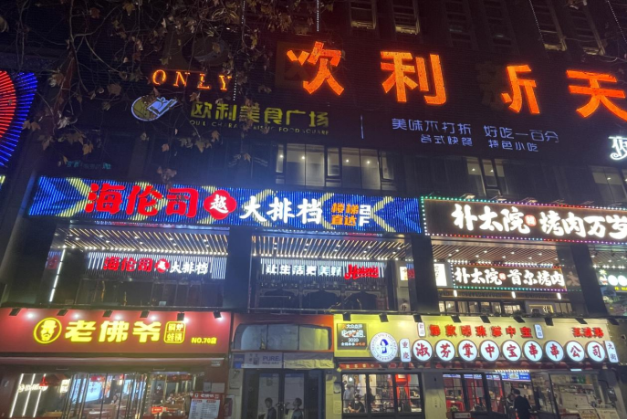 闹市区的海伦司小酒馆与大排档;图源:奇偶派拍摄