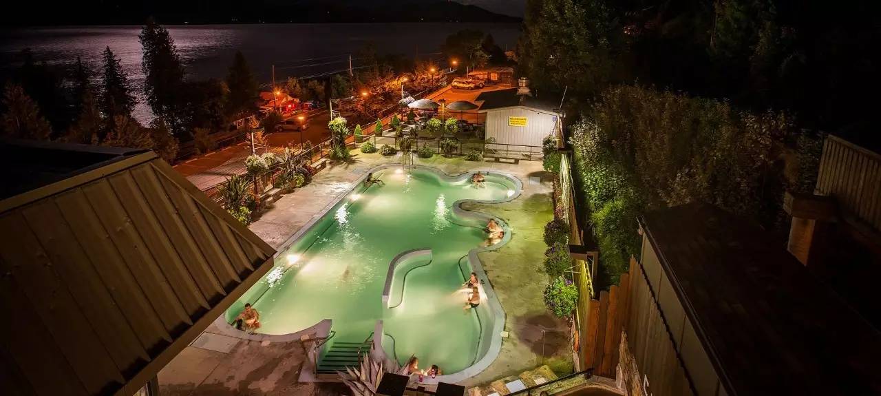 如果您在一个世纪前来到纳卡斯普村镇(the village of Nakusp)附近箭湖(Arrow Lake)岸边,您也许会看到一座豪华的旅馆,古色古香的小屋,必不可少的酒吧和赌场等不列颠哥伦比亚地区被开发早期显著的场景。而现在这里则是哈尔西恩温泉度假村和水疗中心(Halcyon Hot Springs Village and Spa)。