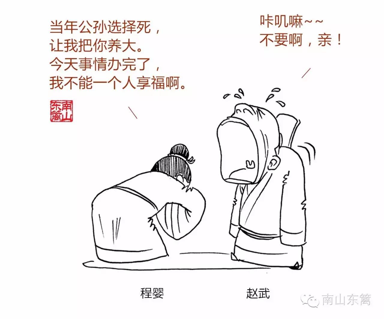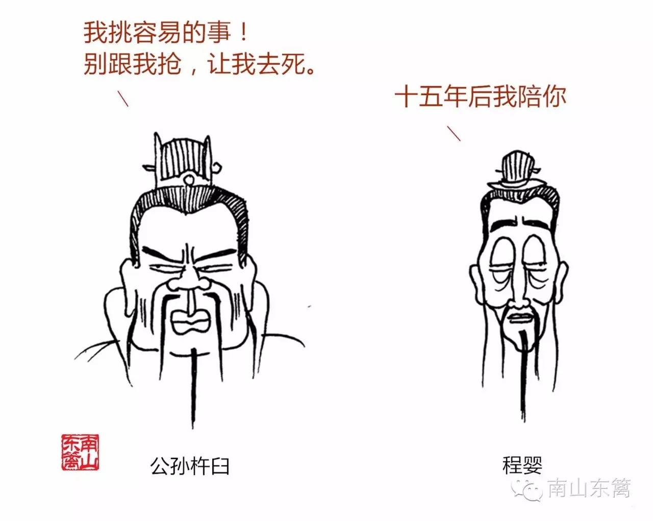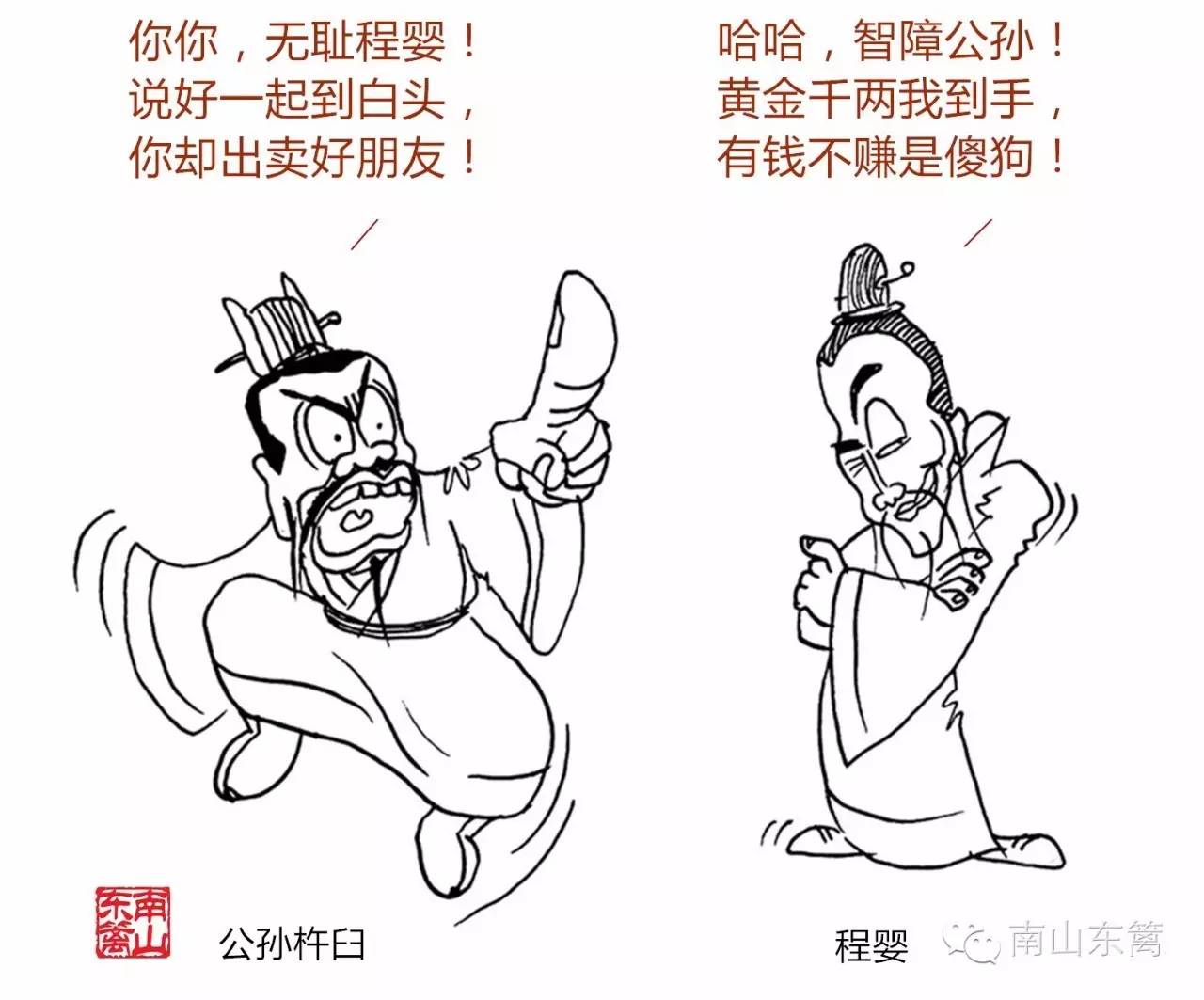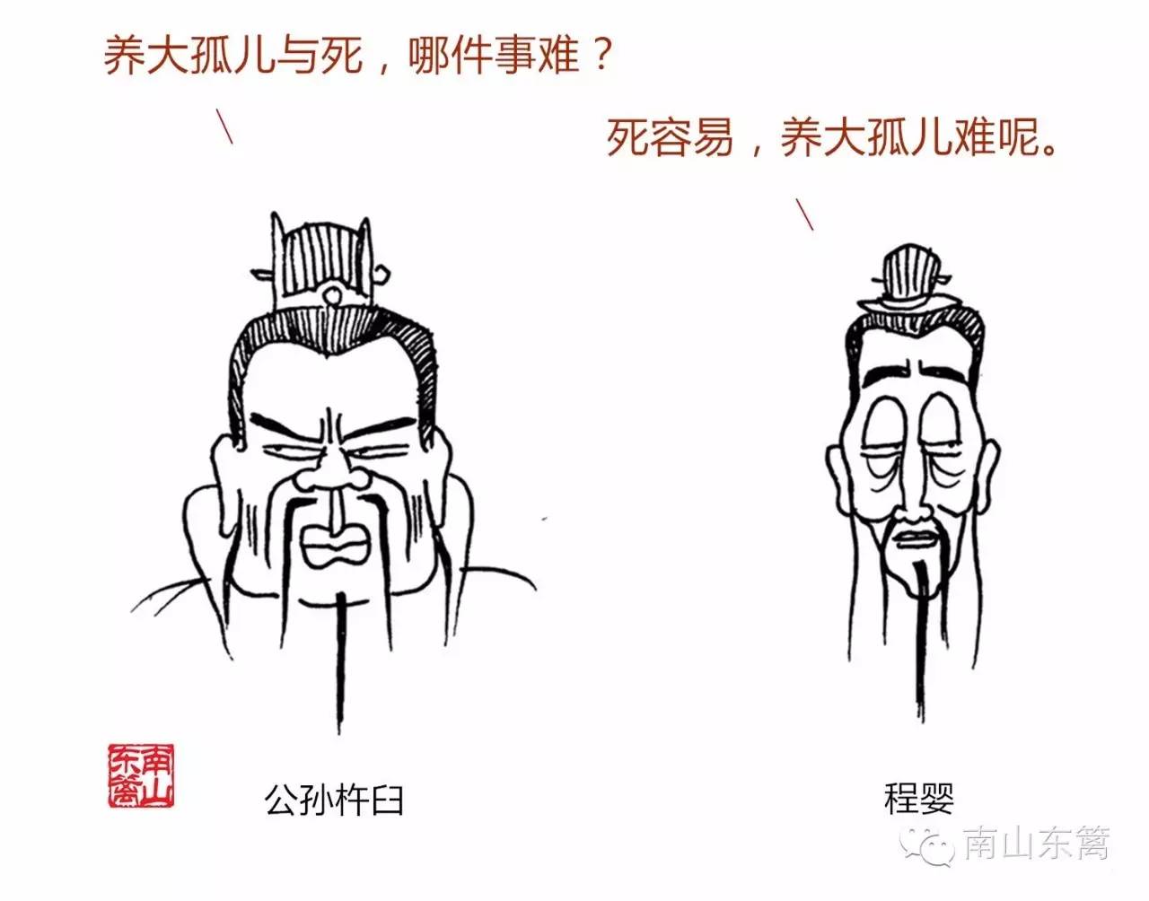 赵家忠实门客公孙杵臼与赵家好友程婴要救这个孤儿,他俩商量着如何分工。