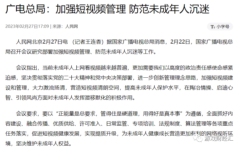 如果短视频防沉迷进一步的监管政策落地,游戏财经汇认为,该政策对短视频以及游戏行业主要有五点影响。