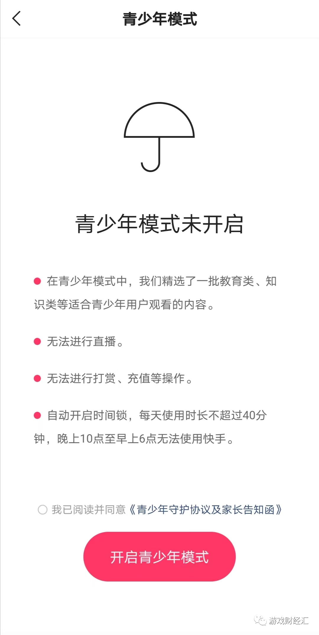 在现行的 “青少年防沉迷系统”下,未成年用户每天观看短视频的时长不能超过40分钟,且晚上22点至次日6时无法使用,也无法进行直播、打赏、充值等操作。