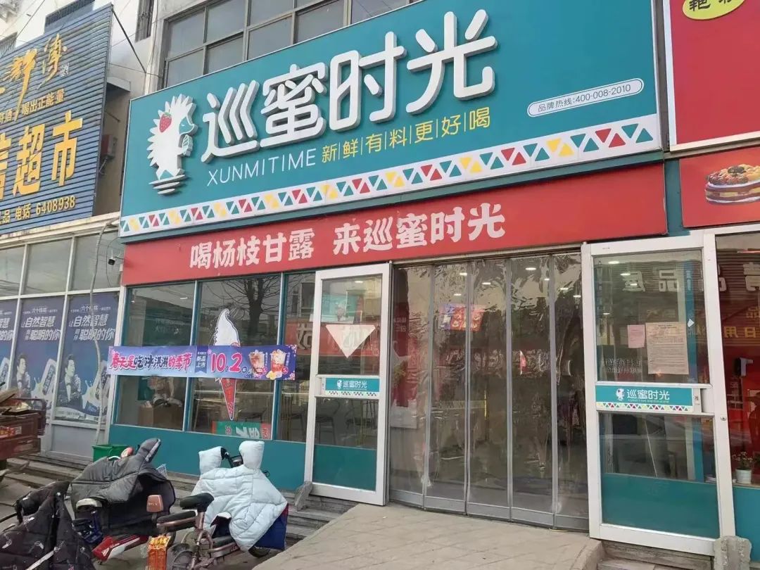 巡蜜时光主攻下沉市场,一个突出的特点是,门头通常是普通茶饮店的两倍大,有些也做到上下两层。