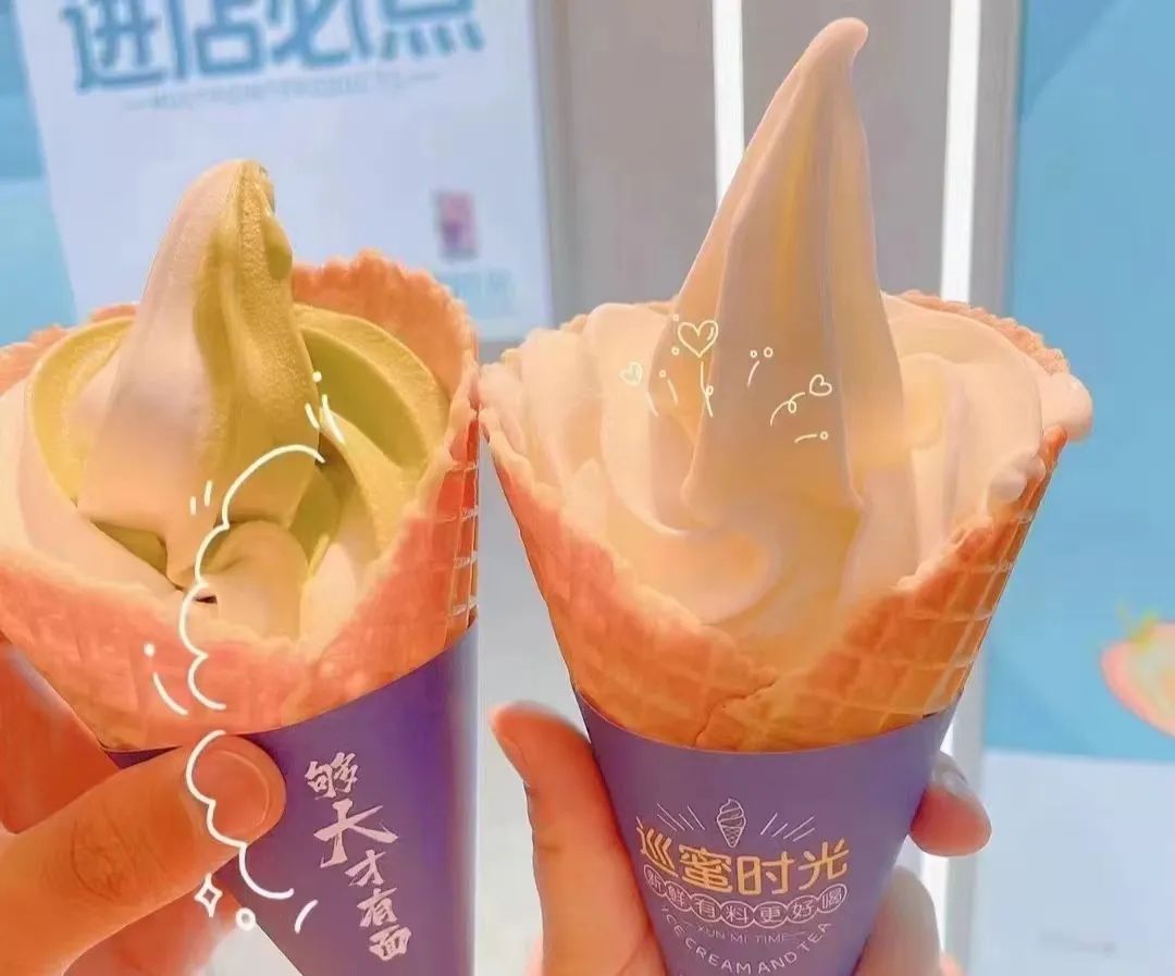 大2倍的脆筒冰淇淋3元/支,柠檬水3元/杯,整体客单价7元,几乎比蜜雪冰城还便宜。