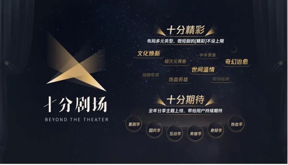 腾讯在线视频平台运营部副总经理李啦解释“十分剧场”时就表示:“腾讯视频已储备海量丰富的精品内容,规划进行全年分季式播出,通过喜剧季、国风季、互动季、悬疑季等为用户提供精彩、多元、丰富的好内容。”
