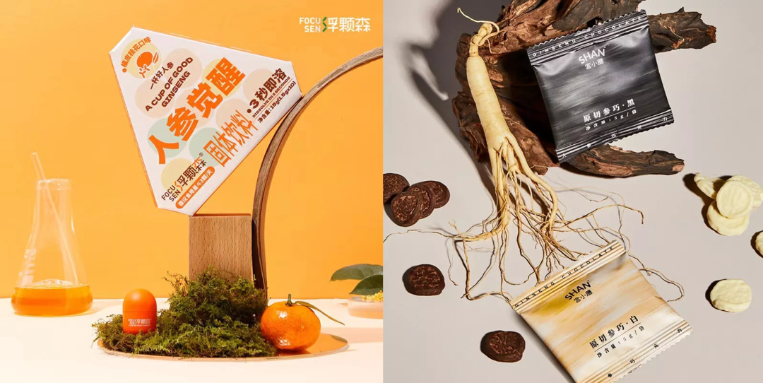 新中式滋补品牌「宫小膳」曾推出一款人参巧克力,产品选用长白山5年人参,采用“低温真空冷冻干燥技术”将人参片制成冻干,再以0蔗糖巧克力包裹制成,有黑巧克力和白巧克力两种不同口味。