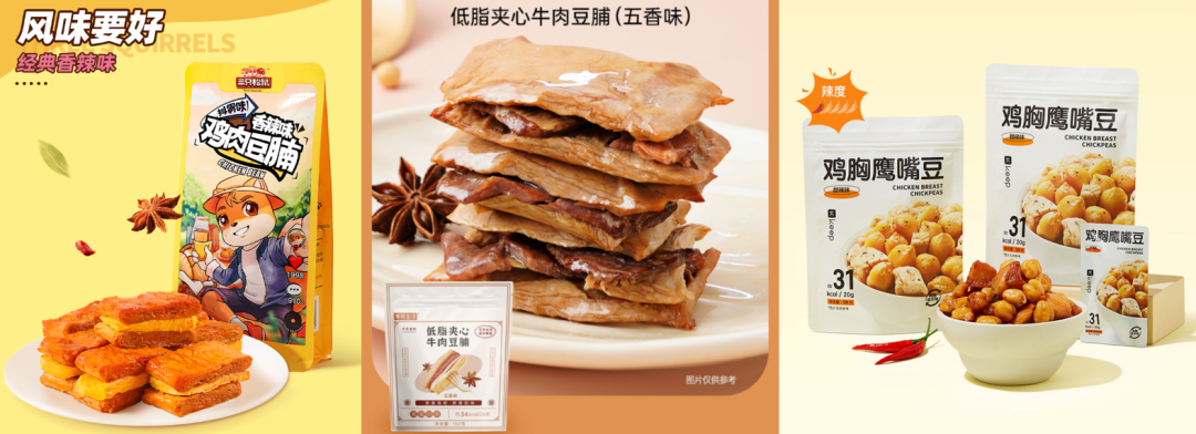 从提供新奇复合的卤味零食体验出发,「三只松鼠」推出「香辣味鸡肉豆腩」。大块豆腩+鲜美紧实鸡胸肉,厚实有料很满足。产品经过21道工序,经慢火卤煮精制,色香味俱全。