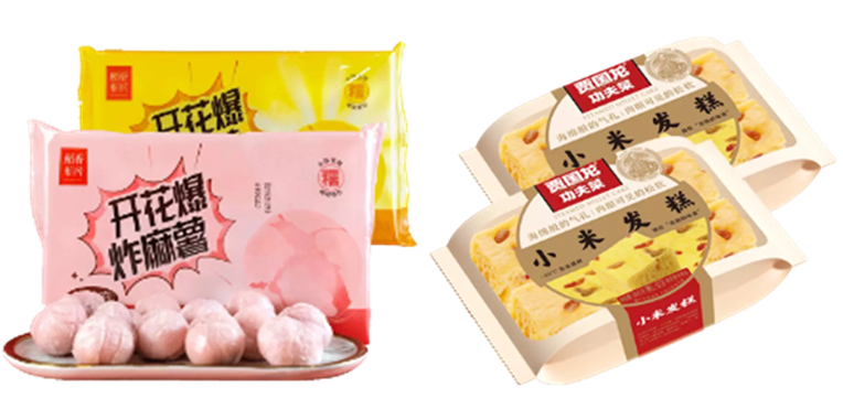 「西贝莜面村」旗下品牌「贾国龙功夫菜」将西贝门店的热销点心以-40℃急冻锁鲜的方式,锁住小米发糕“刚出锅的味道”,食用时仅需要在蒸锅中隔水加热,就可以获得门店同款小米发糕,气孔细密均匀,糕体松软有回弹。