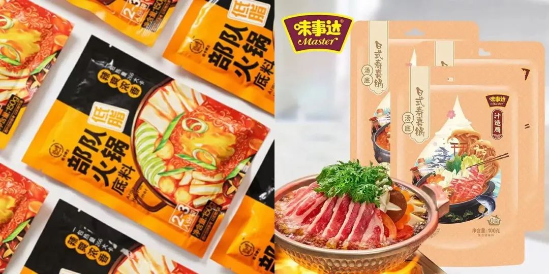 在餐饮行业,日韩火锅也受到很多年轻人的欢迎。「低卡博士」推出「部队火锅底料」,精选低脂酱料,不含香精、色素和防腐剂,在家就能轻松做出韩式部队火锅。「味事达」推出「日式寿喜锅汤底」,甄选传统日本原料,并添加鲜美鲣鱼液,还原正宗日料风味,无防腐剂,食用更放心。