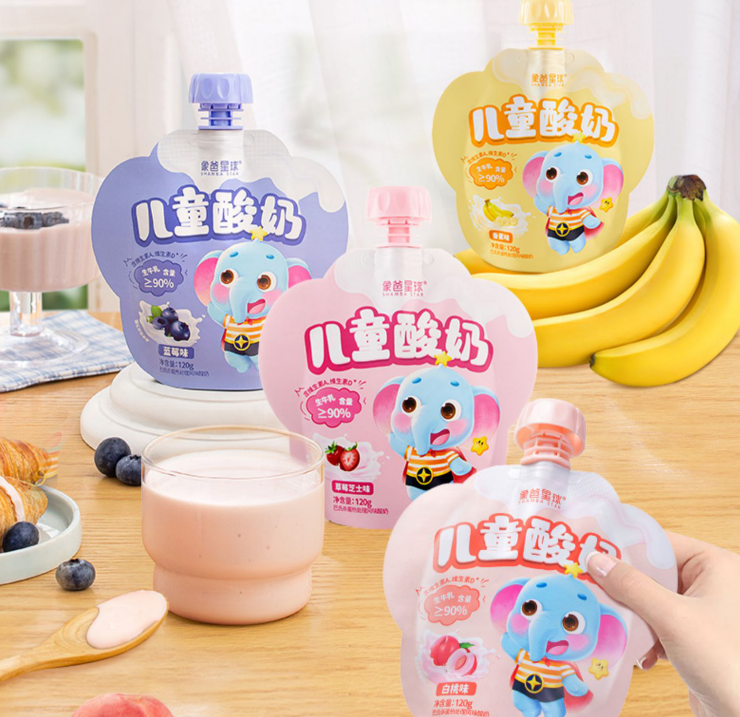 儿童乳品品牌「象爸星球」从“更懂中国孩子的儿童酸奶”切入,推出儿童酸奶系列。产品生牛乳含量≥90%,每袋含3.6g蛋白质,120mg钙,特别添加维生素A、维生素D,四重营养助力成长。不添加蔗糖、人工香精、色素、防腐剂和明胶等成分。产品可常温储存,保存时间长,外出携带方便。