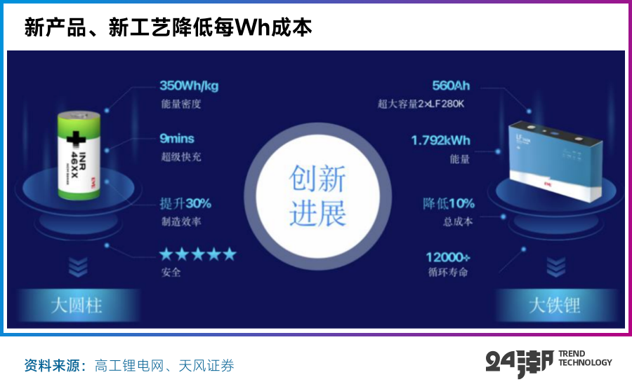 刘金成也明确表示大圆柱和大铁锂会让产品毛利率和行业一线持平,将走出自身产品的差异化路线,不再是行业跟随者。