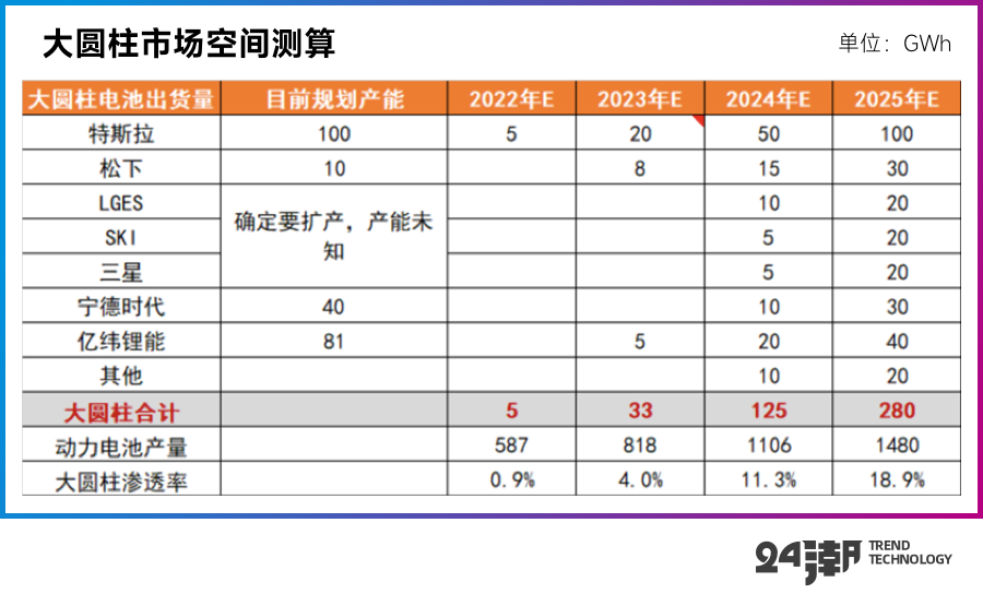 比如根据天风证券的测算,到2025年大圆柱产能将达到280GW,较2022年增长55倍,大圆柱渗透率将从2022年的0.9%上升至2025年的18.9%。可见,其未来有非常广阔的发展空间。