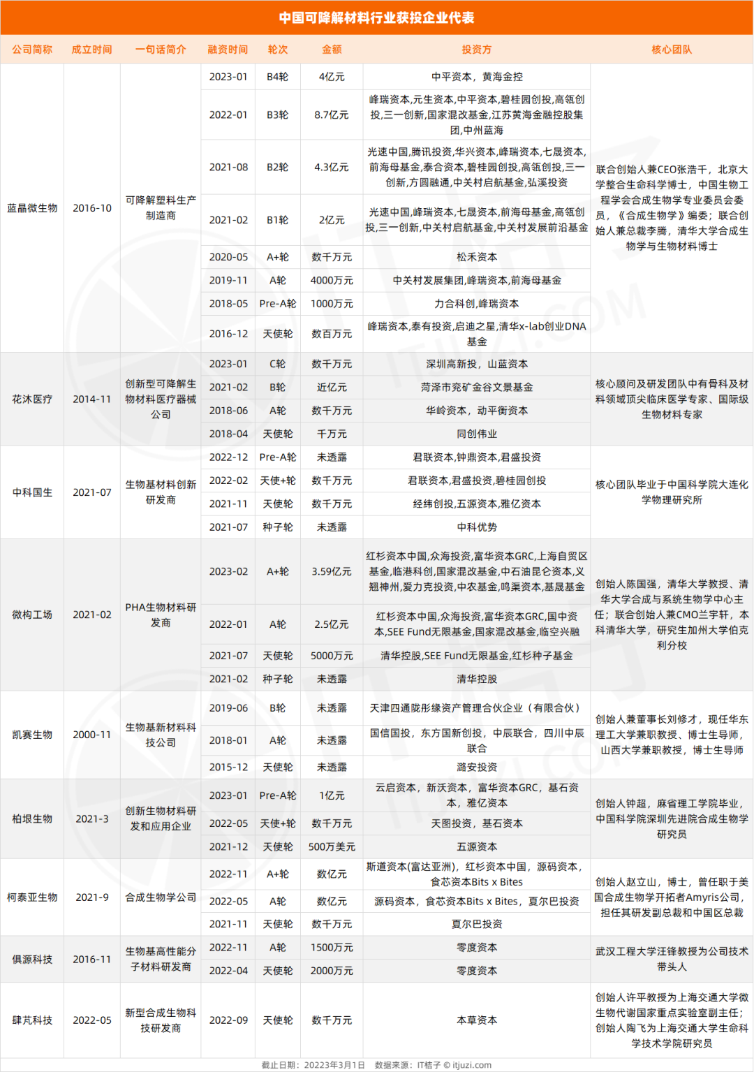 基于政策、现实应用及未来前景下,近年来多家可降级材料企业受到关注,其表现之一为,资本对该行业的投资力度不断加大。
