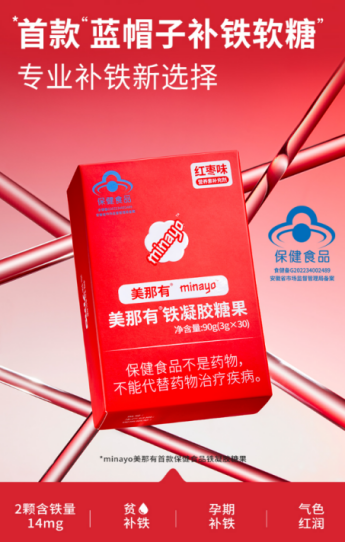 2021年6月,Minayo美那有迎来品牌发展的最大拐点——推出国内市场上首款的富铁软糖。Minayo美那有富铁软糖瞄准女性气血补充的需求,将传统液剂翻译成可便携食用的软糖剂型功能食品,解决保健品永远“剩半瓶”的痛点,一举“引爆”国内市场,从此霸榜各大电商平台。