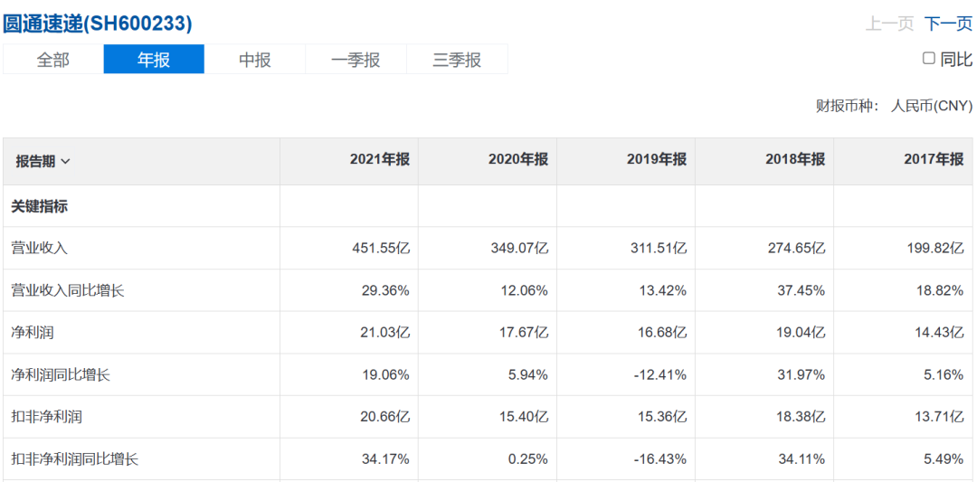 表面上圆通在全年完成业务量不及韵达,但更深次来看,两者却交出了不同的净利润答卷。