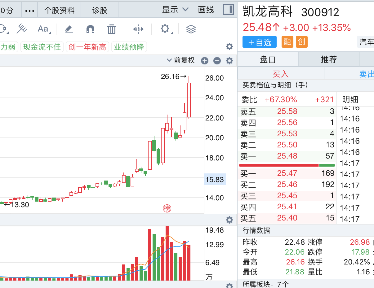 业绩预亏的凯龙高科(300912.SZ)近期股价表现“神勇”,1月30日至今累计涨幅超过了80%,3月8日单日涨幅都有17.44%。