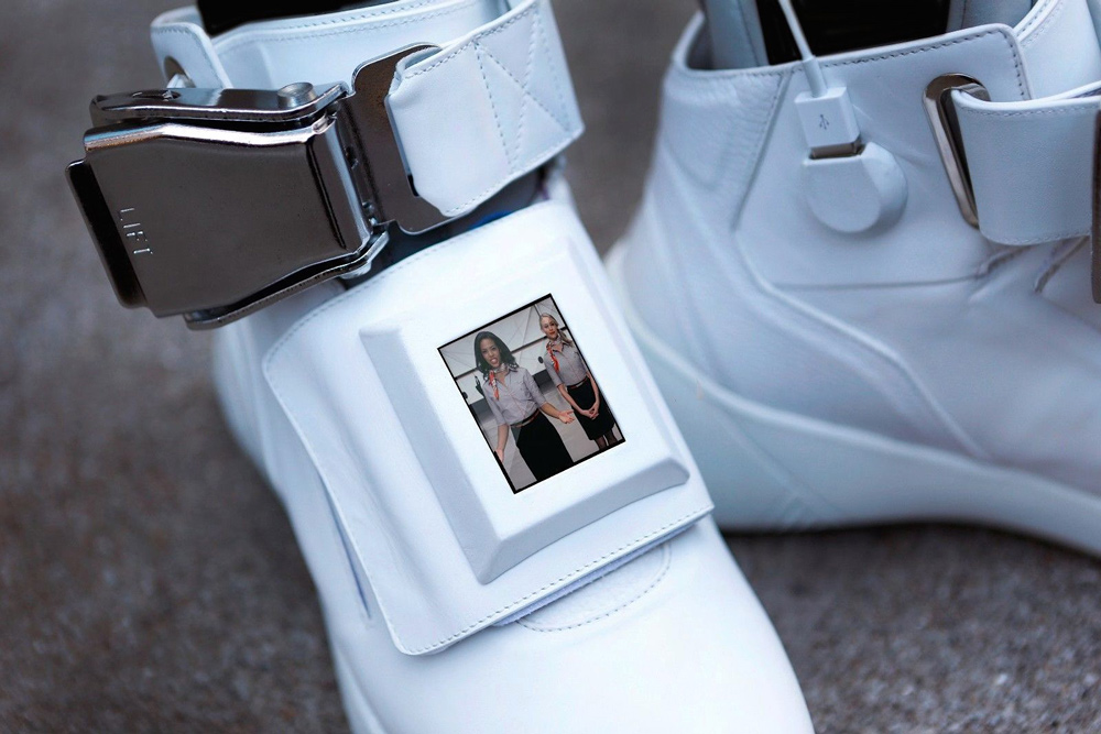 对于维珍这个老牌的航空公司,“头等舱”概念除了代表飞机上仅有的几个能享受特级服务的座位,还代表数量极少的一双多功能鞋。美国维珍航空联合设计公司Eleven Inc 和 SearchnDesign,共同研发一双专为头等舱乘客使用的「First Class Shoe」运动鞋。整双鞋最抢眼的地方,第一个是类似飞机座椅安全带的金属搭扣,第二个是鞋身正面可以用来播放电影的LED显示屏,第三个是自带无线WiFi,最后就是可以接入USB线给手机充电。