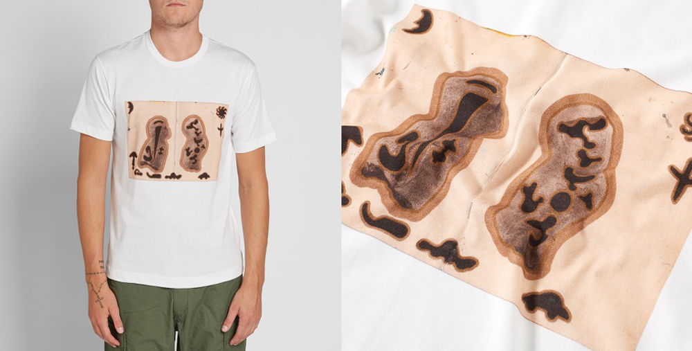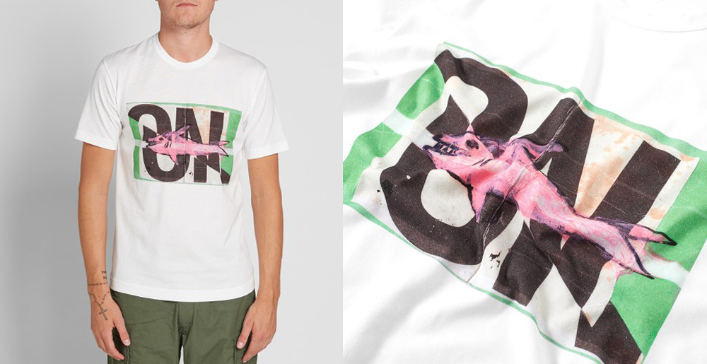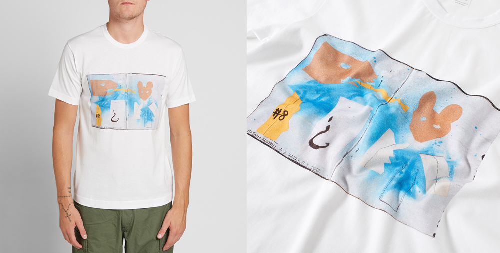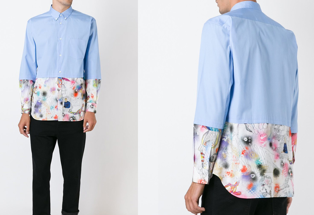 川久保玲创立的COMME des GARÇON是日本时装的代表之一,旗下男装副线COMME des GARÇONS SHIRT常展现出条纹、拼接和图案印花等丰富的设计样式。在2016年秋冬新品种,COMME des GARÇONS SHIRT与日本艺术家Masaho Anotani一同创作出独特的涂鸦印花,先在素色的布料上呈现不同颜色堆叠的效果,再拼接于衬衫不同部分,饶有艺术品的意味。这个系列已经在COMME des GARÇONS各门店和网店有售,衬衫405欧元(约3000元人民币),T恤105欧元(约780元人民币)。