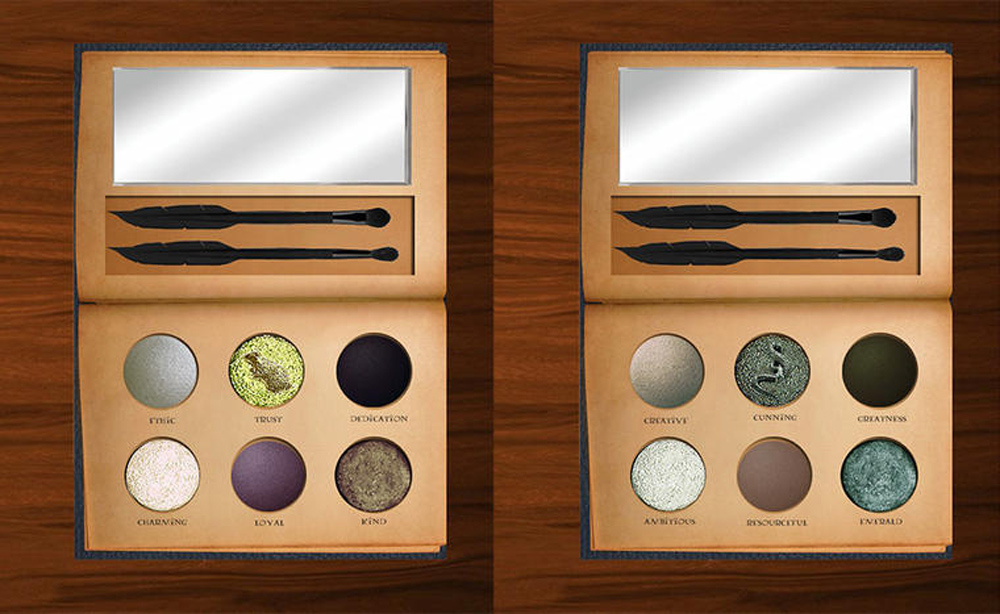 《哈利·波特与被诅咒的孩子》的出版掀起了新一波魔法世界热潮,除了书迷重温旧作和电影之外,彩妆品也来凑了个热闹。Storybook Cosmetics推出了一套哈利·波特主题的彩妆,包括四盘分别代表霍格沃茨四个学院的眼影盘,并且所有眼影的色号均以魔法师的特质命名,还有一套魔杖似的化妆刷,刷毛是人造毛,刷杆用金属制成。目前在Storybook Cosmetics的官网可以预定魔杖套刷,售价55美元加上13.5美元的邮费(一共约470元人民币),12月1日左右发货。眼影盘上市日期待定。
