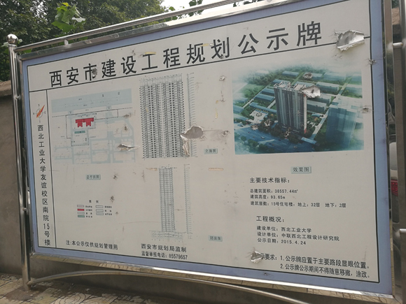 西北工业大学南院15号楼施工项目(下称15号楼)位于西安市友谊西路127号,招标人为西北工业大学,代理公司为陕西万隆金剑工程管理咨询有限公司。根据招标文件,项目建成后地面为32层,地下为2层,建筑面积达到38557.44平方米。