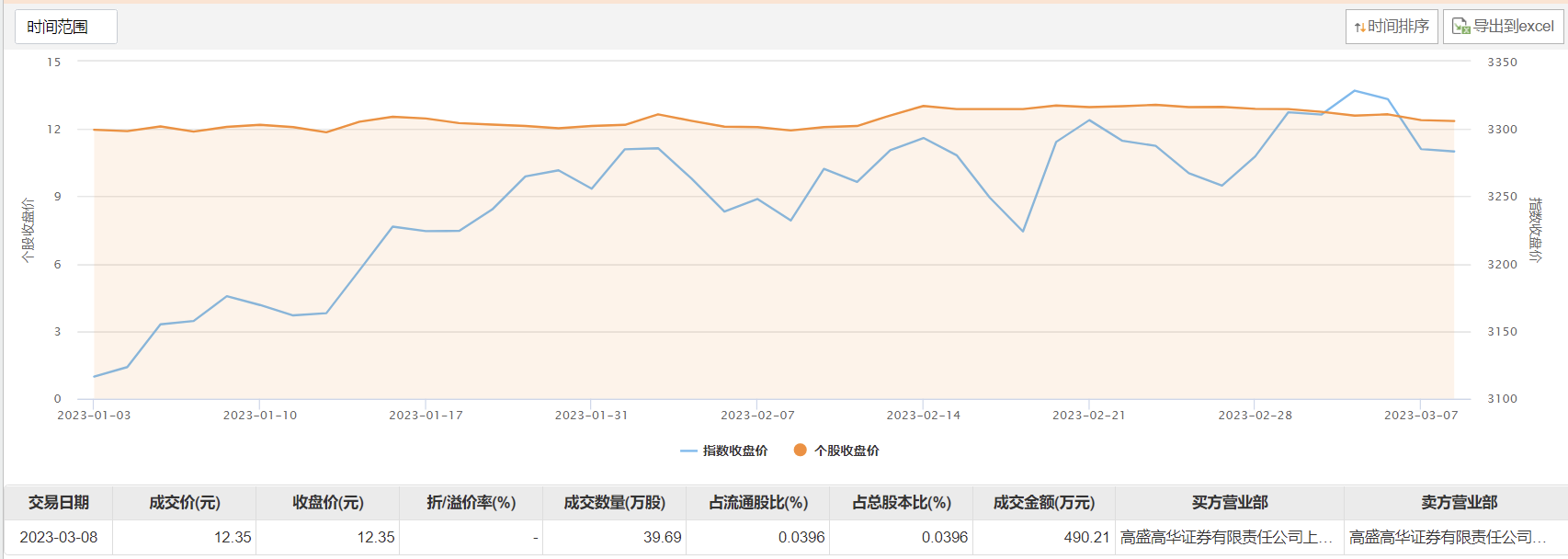 3月8日,恒顺醋业大宗交易成交39.69万股,成交额490.21万元,占当日总成交额的4.41%,成交价12.35元,较市场收盘价12.35元持平。