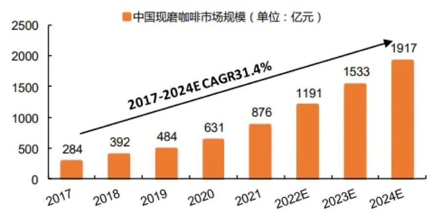 未来咖啡市场增速也颇为可观,艾媒咨询数据显示,2021年中国咖啡市场规模约为3817亿元,消费者突破3亿人次。同时,中国国内咖啡市场预计将以27.2%的增长率上升,预计到2025年,中国市场规模将达10000亿元。
