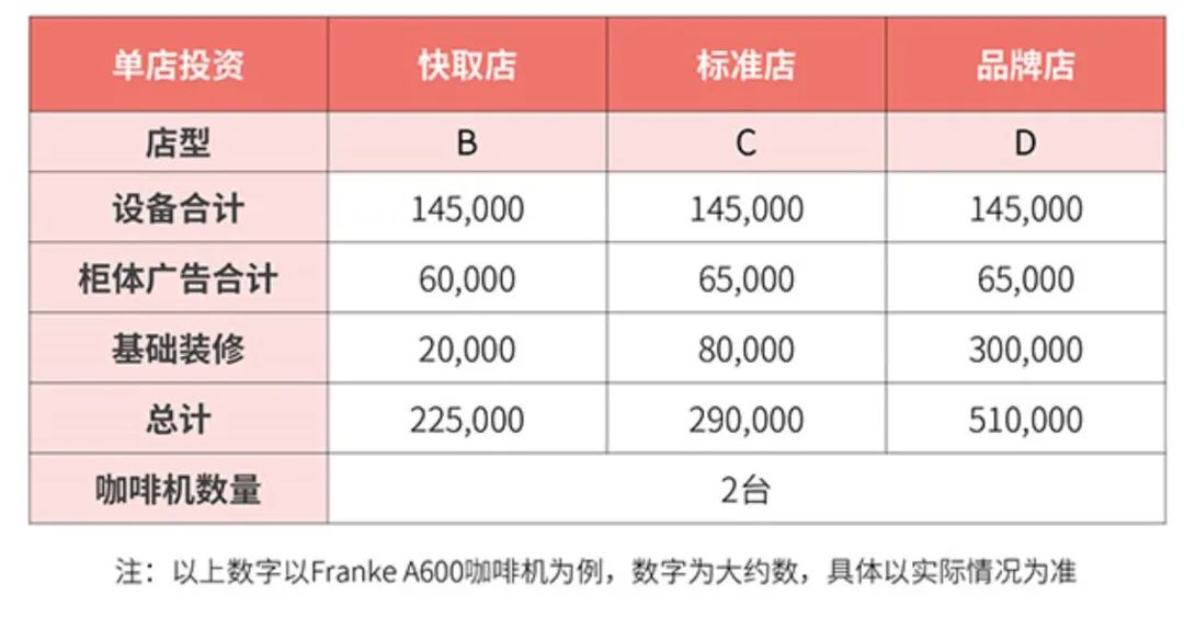 而在库迪的官网上可以看到,一家面积为30平方米的快取店,前期投入为22.5万元,其中还包含设备、设计、装修等费用,差不多为瑞幸的三分之一。