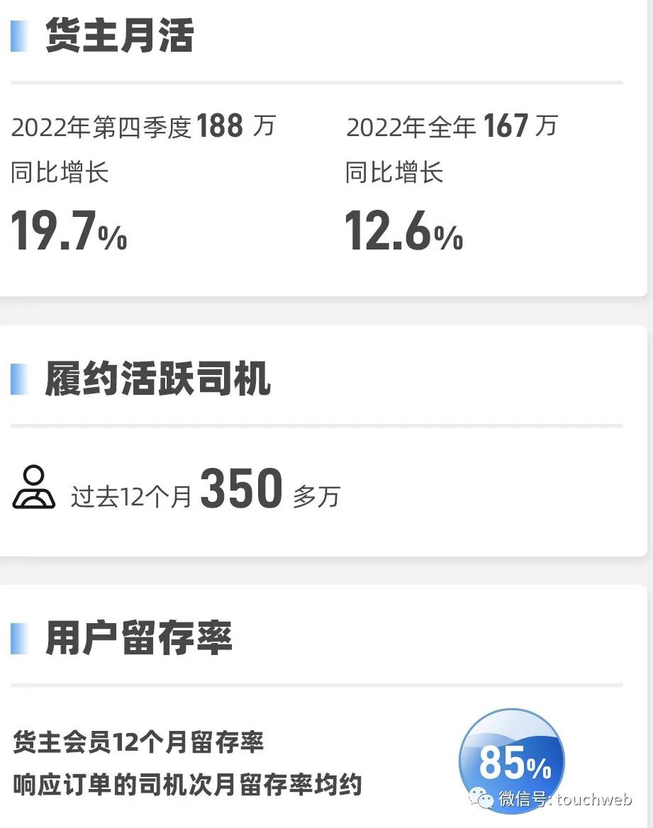 2022年满帮平均发货货主月活达167万,同比增长12.6%,其中四季度平均发货货主月活高达188万,同比增长19.7%。