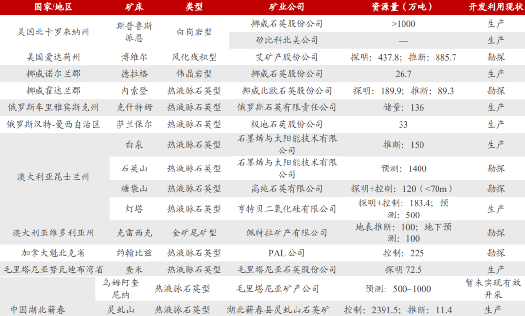 资料来源:《全球高纯石英原料矿的资源分布与开发现状》