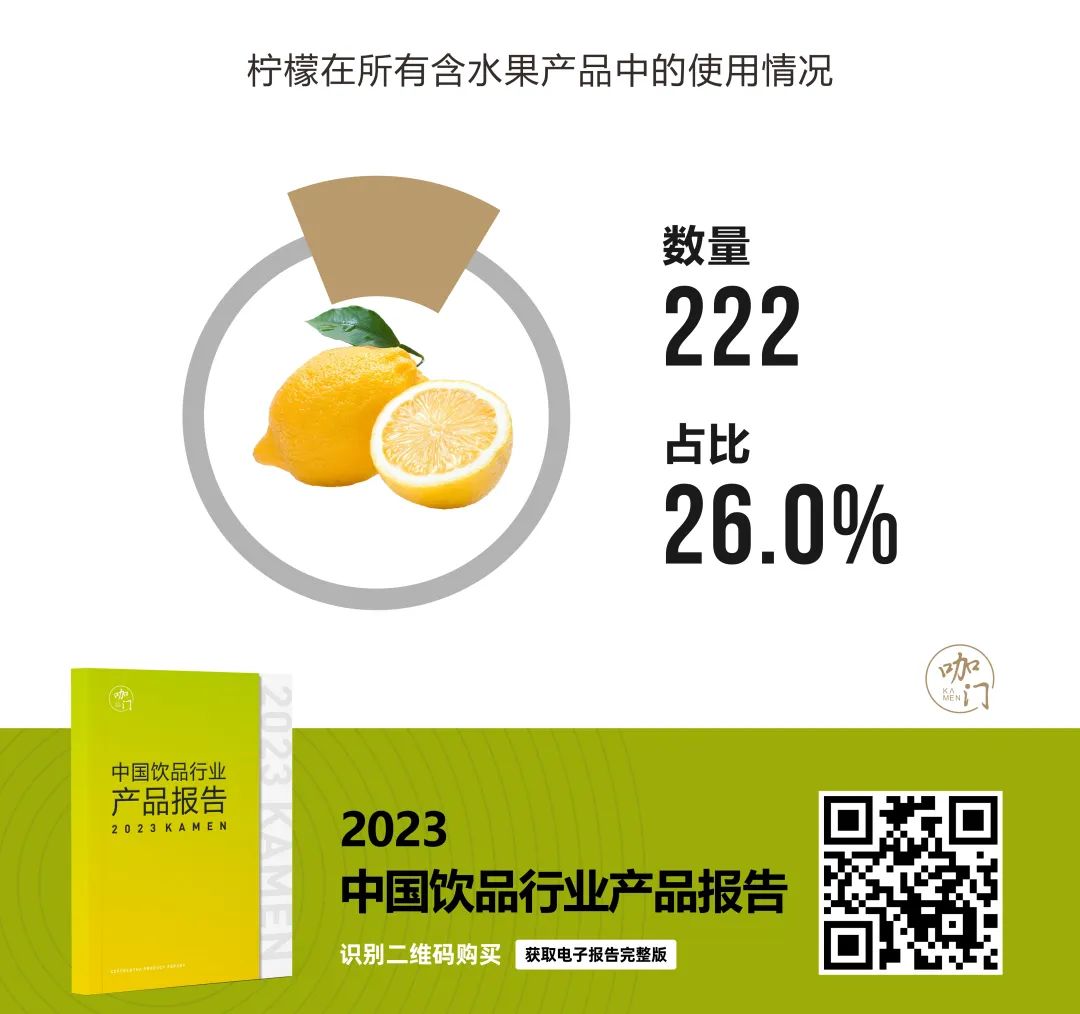 柠檬以222次的使用频次,成为2022年水果应用的Top1。