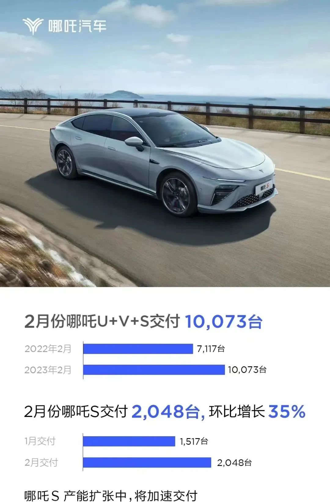 以往处于新势力第二梯队的哪吒,其实销量表现已经追上、甚至超越了第一梯队。比如往前数三个月(2022.12、2023.1、2023.2),哪吒的销量分别为7795、6016、10073辆,去年2022全年销量哪吒达到15万台,已经超过蔚小理。如果不考虑哪吒产品相对平价的因素,新势力排位某种程度上已经可以改成“蔚理哪”了。