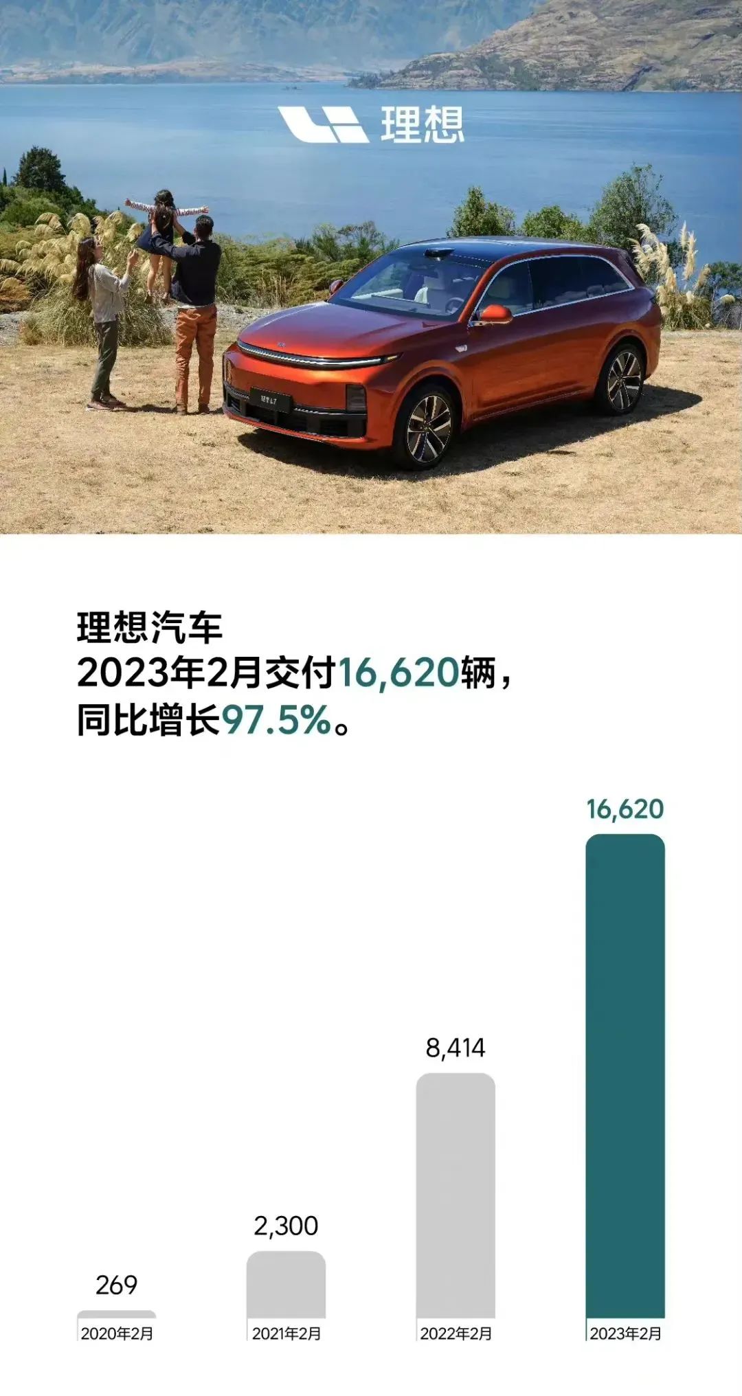从今年1月份的数据来看,理想占据了三家中绝对领先的地位,月销量是蔚来的2倍,小鹏的3倍。来到2月,三家的销量都有环比增长,蔚来幅度最大,达到43%,这也让其与理想的差距有所缩减,回到同一水平线,而小鹏尽管也有15%的环比增长,但整体上还是延续了之前的颓势,与另外两个老对手的差距进一步加大。