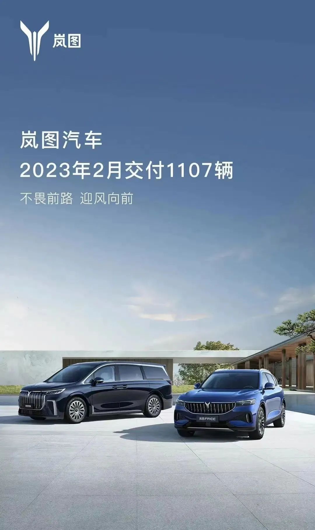 与零跑境况相似的岚图,即便有东风汽车作为靠山,也没能缓解进入2023年后连续下滑的趋势。岚图今年1月份销量为1548辆,2月份继续降到1107辆。尽管岚图标榜自己是高端品牌,产品均价高于排名前列的部分企业,是绝对销量规模相对有限的客观原因,但即便如此,若跟自己相比的话,岚图的销量其实也进入到了迟滞状态。