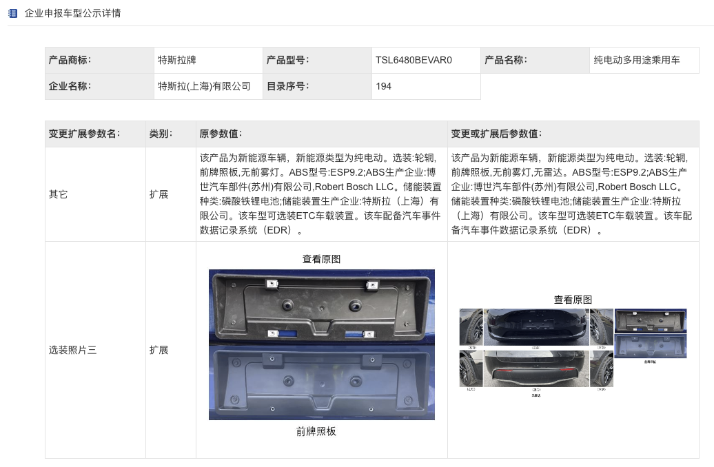 3月9日,据工信部第369批《道路机动车辆生产企业及产品公告》变更扩展公示,包括磷酸铁锂版车型在内的四款国产特斯拉Model Y车型进行了信息变更备案,新版车型均更改为“无雷达”方案。