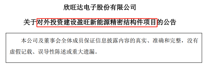 欣旺达称,该项目有利于持续巩固盈旺在3C消费类精密结构件领域的领先地位,稳步提升盈旺在行业的渗透率及占有率,同时有助于盈旺积极布局拓展业务进入新能源电池精密结构件领域。