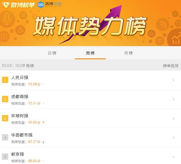 但是新京报的新媒体部门表现不俗,无论是在微博,还是今日头条上都展现了强大的内容吸引力,其中新京报在占据由“清博大数据”发布的微博媒体势力榜的第五名。