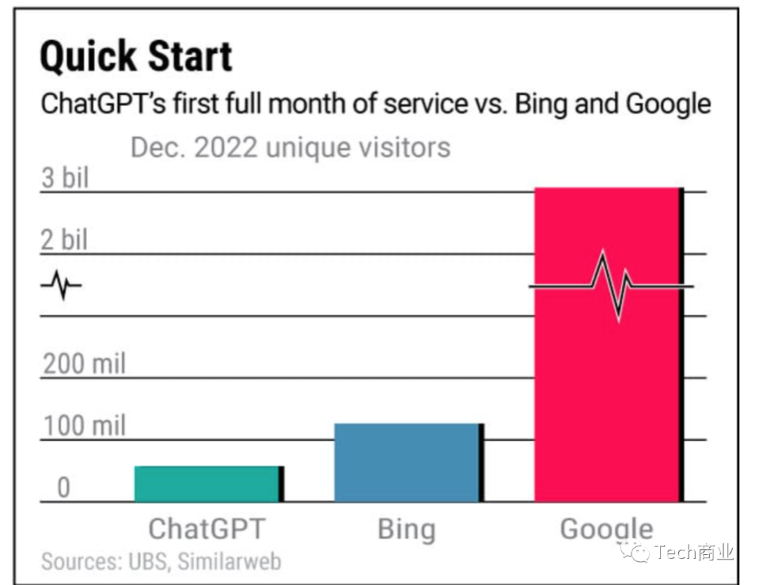 在推出的第一个月,ChatGPT 获得的独特访客数量几乎是微软必应搜索引擎吸引的一半。