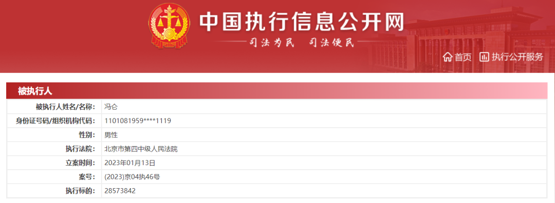 3月7日,中国执行信息公开网显示,冯仑被列入被执行人,执行法院为北京四中院,执行标的2857.38万元,立案日期为2023年1月13日。