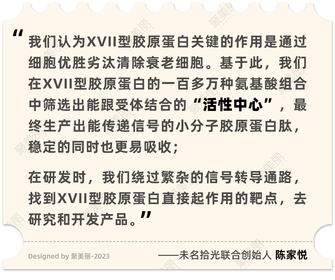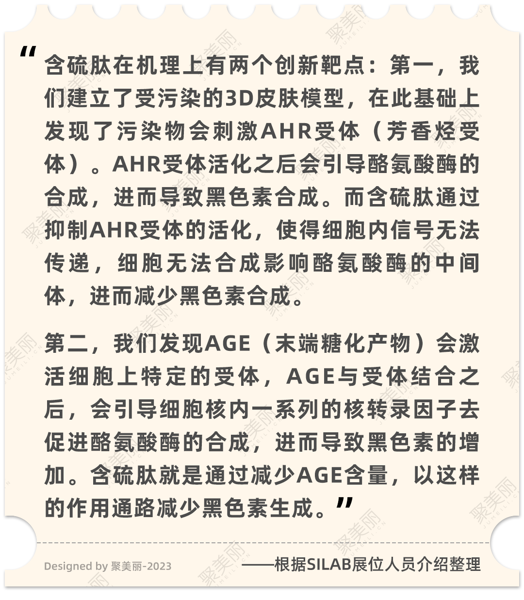 “明确细胞靶点,阐述完整的作用机理”成了多方关注的重点,越来越多的原料商在推出新原料时,会为需求方阐释原料作用的具体细胞靶点和作用通路,比如未名拾光的重组XVII型胶原蛋白,SILAB的LIGHTSKIN 含硫肽等。