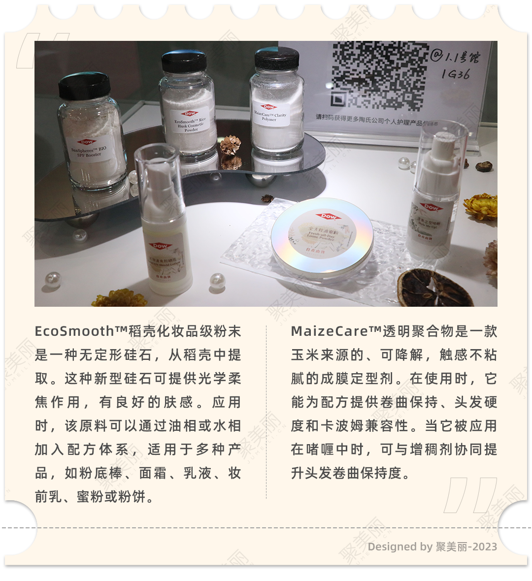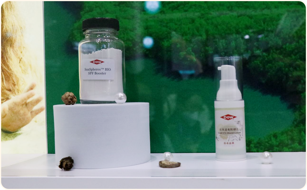 陶氏今年在展会上推出了三款天然来源的可持续原料,上文提到的木浆来源防晒增效剂便是其中之一,这项原料的天然成分含量高达97%,可生物降解,对海洋和环境安全。另外两项原料则分别来源于稻壳和玉米。