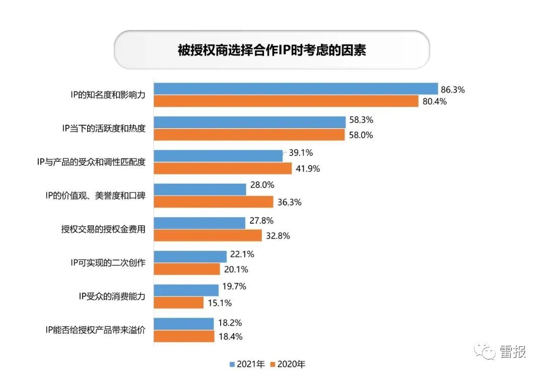 被授权商选择合作IP时考虑的因素/图源:《2022中国品牌授权行业发展白皮书》