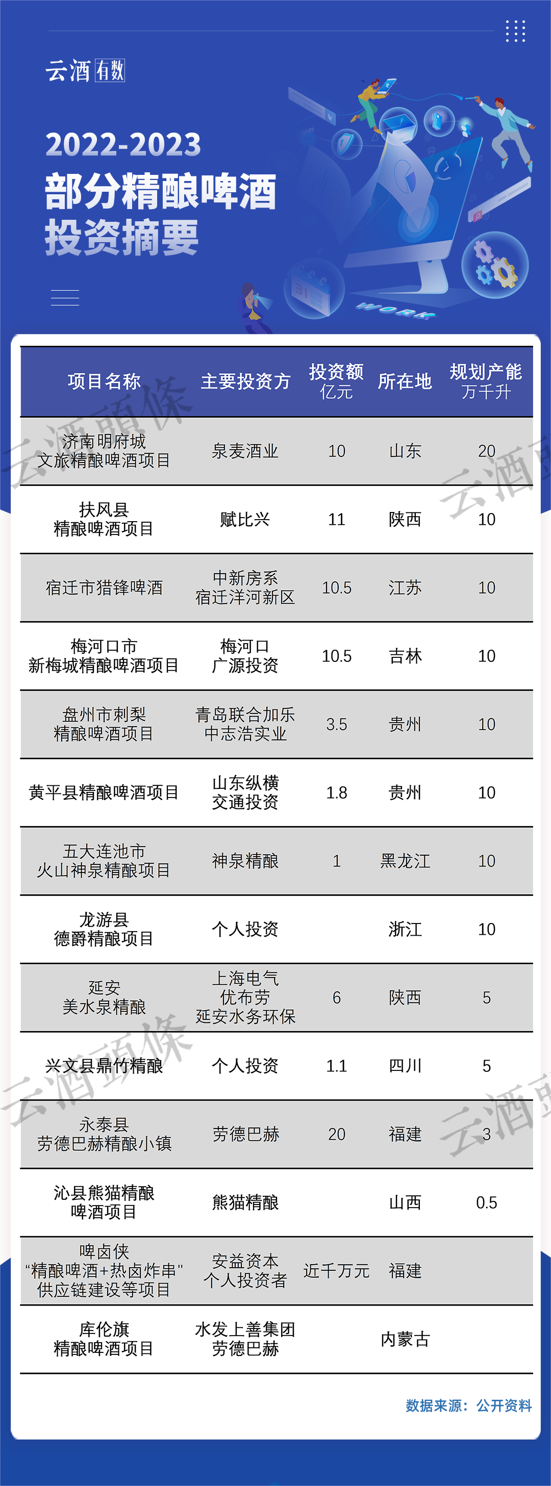 云酒头条汇总部分案例后发现,14个项目分布于全国11个省,总投资金额超过75亿元,中西部省份和三四线城市占据较大比重。