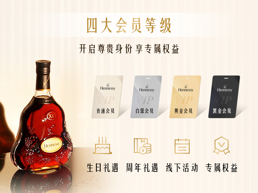 与此同时,轩尼诗挚樽会商城的四大等级体系包含普通会员、白银会员、黄金会员、黑金会员也于3月1日同步上线,在轩尼诗挚樽会小程序注册即可成为普通会员,享有生日月和注册周年的积分奖励。根据实际购买金额和互动参与,会员都可获得相应的积分奖励,一定期间内累计购买至特定金额则可升级为白银会员、黄金会员以及黑金会员,将可解锁该等级的额外专属权益,包含线下活动兑换权益、指定产品购买资格以及BLENDS by Hennessy指定款鸡尾酒券。