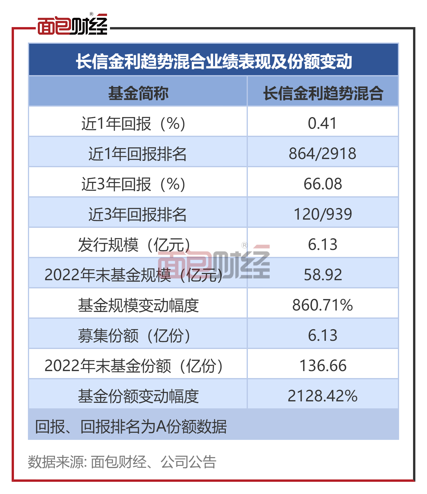 长信金利趋势混合的发行规模约6.13亿元(对应募集份额约6.13亿份)。2022年四季度末,该基金的基金资产净值约为58.92亿元、基金份额总额约为136.66亿份,分别变动860.71%、2128.42%。