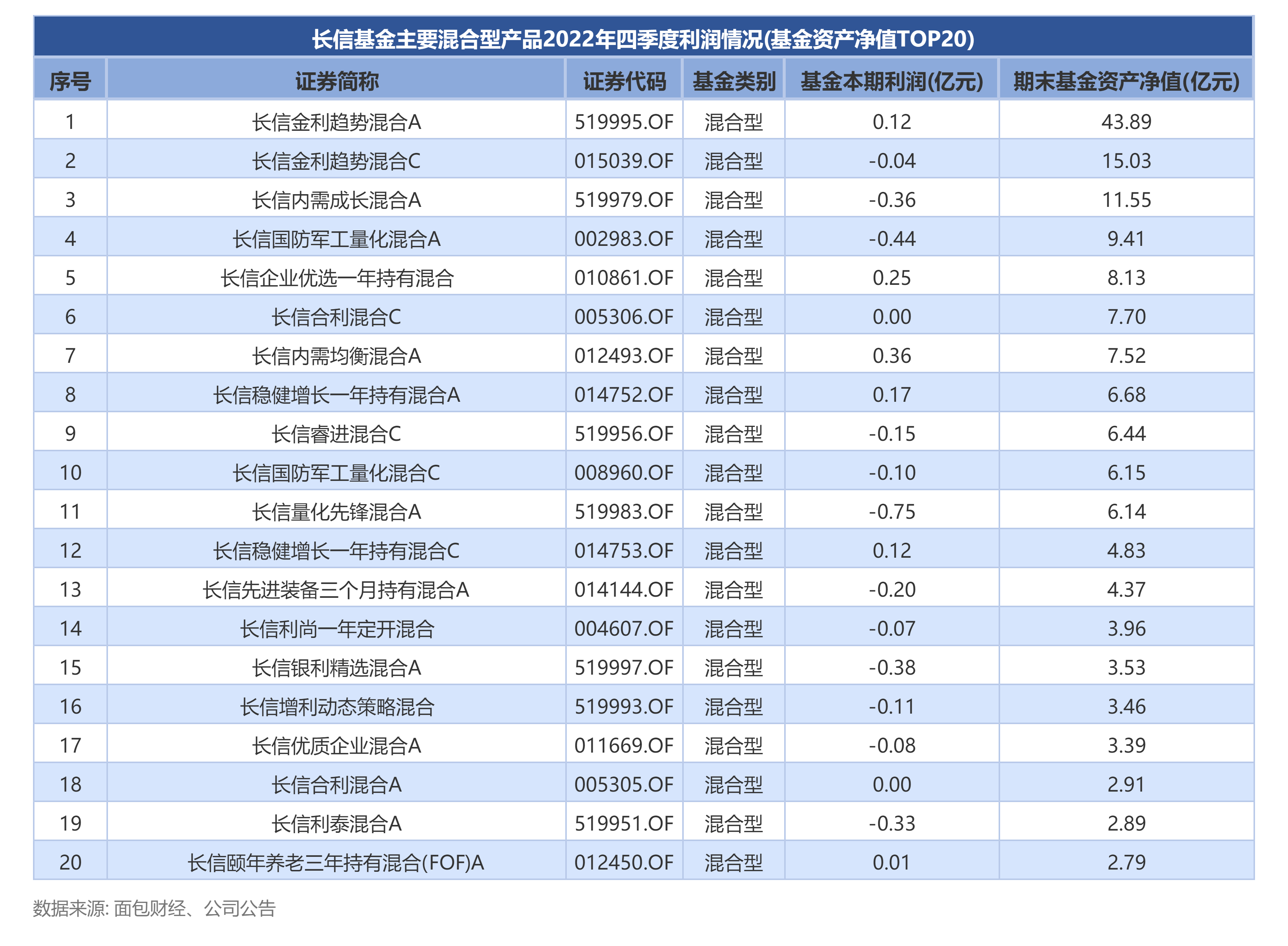 附注:长信基金主要混合型产品2022年四季度利润表现(基金资产净值TOP20)