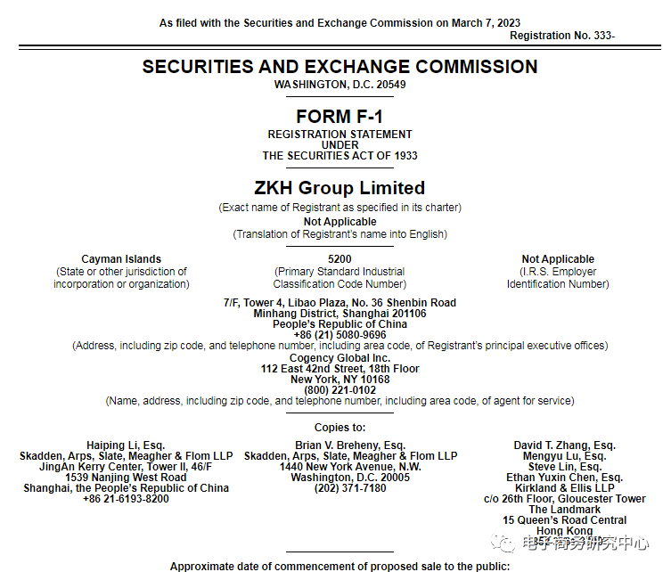 3月7日,工业品电商“震坤行”正式向美国证券交易委员会(SEC)递交了招股书,计划在纽约证券交易所挂牌上市。代码为“ZKH”,承销商为高盛和华兴。这意味着,震坤行或将成为第一家在美上市的中国工业品电商。