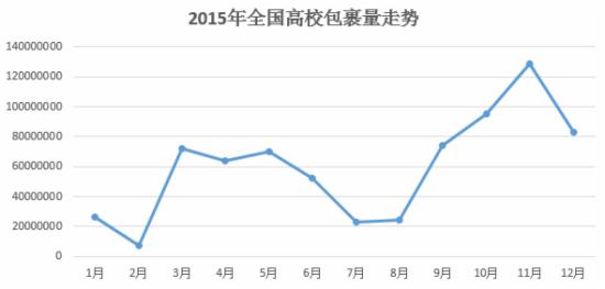 季节性方面,主要是具有明显的寒暑假特征,每年1~2月,7~8月物流量明显下降。同时,9月~11月包裹数量呈明显的上升趋势,到11月达到全年顶峰,较之2015年上半年,下半年的包裹数量更多。