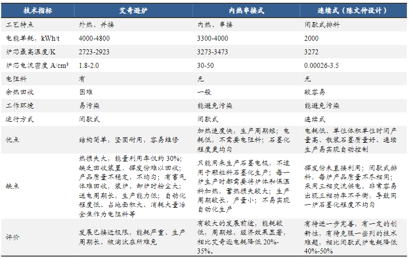 从石墨化工艺看,未来箱式炉、连续石墨化炉将逐渐兴起。石墨化主要包括间歇式和连续式两种加工工艺,间歇式工艺主要采用艾奇逊炉和内热串接式石墨化炉,连续式工艺则主要采用连续式石墨化炉。
