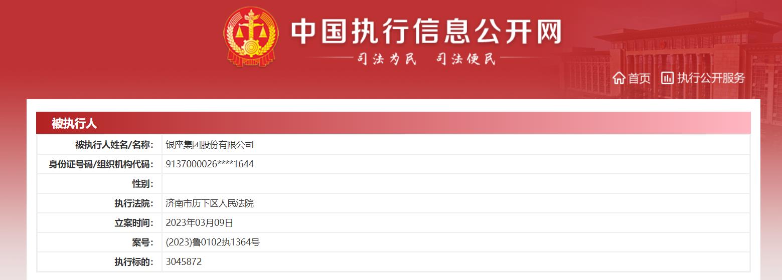 3月10日晚间,据中国执行信息公开网显示,银座集团股份有限公司(下称“银座股份”)于3月9日新增一则被执行人信息,执行标的304.59万,执行法院为济南市历下区人民法院。