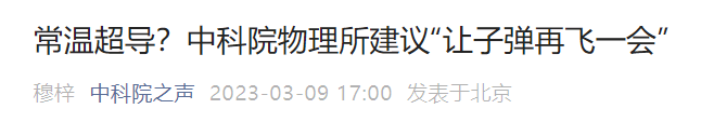 除了超导领域本身的重要性之外,还是因为这条新闻,激发了当下国际科技竞赛的普遍焦虑。
